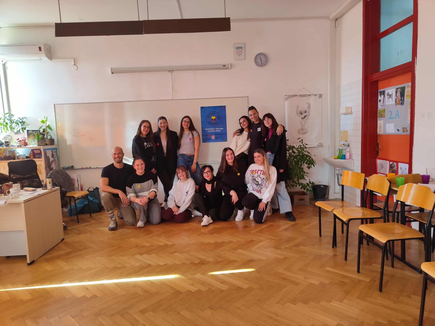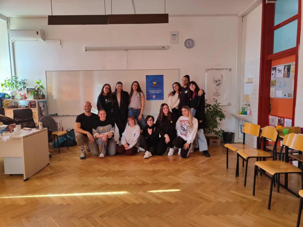 U ponedjeljak, 10. 11. 2025. u učionici 121, učenice dramske skupine i pridruženi zainteresirani učenici iz drugih razreda imali su priliku sudjelovati u radioničkom programu Kazališta Hotel Bulić u okviru projekta Ruksak pun kulture. Projekt je pod pokroviteljstvom Ministarstva kulture i medija Republike Hrvatske.